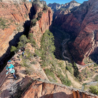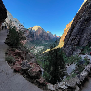 Day 4 (ANGELS LANDING) - One of the highlights of our trips and a must-do when you visit ZION. There are many discussions about the safety of this hike and it is not too hard but if you have a fear of heights, high anxiety, nervous around people then I would caution you against attempting to do this. You can hike to the first major landing spot called Scouts Landing and views are amazing from there. Afterward, that is when the chains towards Angel Landing begin on the .05 mile hike. Be confident in your footing and have good hiking shoes which I highly suggest although I did see some people with flip flops and tennis shoes so apparently it can be done. Slow and steady get you there and many people are accommodating but middle of the day gets pretty hectic trying to maneuver around people. Going up was breath taking and not many problems but after we made it to the top my knee acted up again and it was pretty challenging to get back down but we did top to bottom under 4 hours.