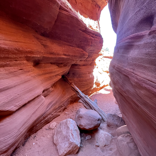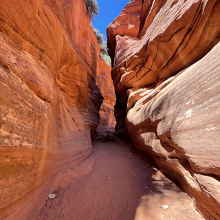 After BELLY OF THE DRAGON, I wanted to visit KANAB PEEK-A-BOO SLOT CANYON which is about 30 to 40 minutes away. They are a couple other smaller parks to visit along the way but PEEK-A-BOO SLOT CANYON was on our list. NOTE: Please download a map or GPS tool to help you navigate because you can get lost and MUST have a 4-wheel drive vehicle or you can get stuck with the fine sand on your way to the canyon.