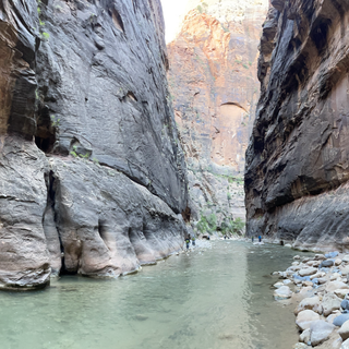Most research indicates to enjoy your hike plan and start early before 7am on the trail if possible. Due to COVID the ZION Shuttle (runs about $2 per person and Non-Transferrable) was limited to 14 and 19 people per shuttle so booked extremely fast. There are other shuttles like Red Rock and Zion Guru shuttles and run between $35-$40 but not a jump on. Jump off type of shuttle. They drop off at a designation spot and pick up at that spot but I think you could possible jump on somewhere else if you wanted to hike to another location. We were on the Narrows trail @ 6:50 am with little to no crowd and their is a paved walk way with brick wall that will lead you to Temple of Sinawava which is the beginnings of the Bottom-up Narrows Trail. Pictures do not do this place justice it is something you must see to believe and the sounds of nature and the clean fresh air are breath taking. Note this is a 6-8 mile hike which is moderate to hard at times and you WILL get wet, anywhere from ankle to shoulder height, it will just depend how far you go and the time of the year. As you hike on the trail you will be stepping 90% on rocks the entire time with a few areas clear of rocks. Watch for sections with streams as those areas are harder to see to place proper footing, your pole is your friend. On the way back, the crowds picked up and made it more challenging getting back trying to dodge people and working the ebb and flow of the traffic. People forget that the hikers on the way back have the right of way.